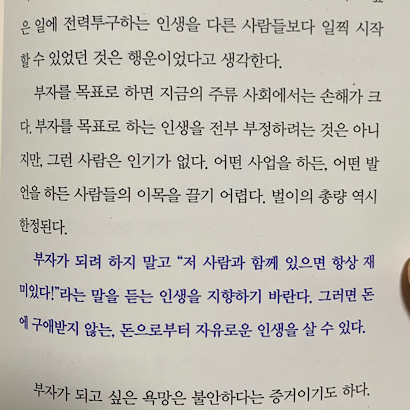 결혼이나 자가마련 절약 등을 당연시함(?) 했었는데 이 저자는 완전히 다른 생각을 가지고 있어서 신기했다